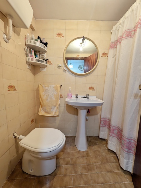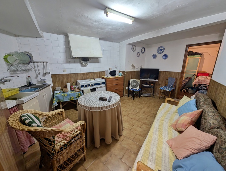 - Planta baja: Entrada- sala de estar, pasillo, baño con bañera, cocina-comedor y almacén/despensa