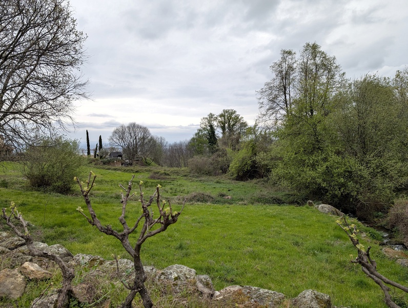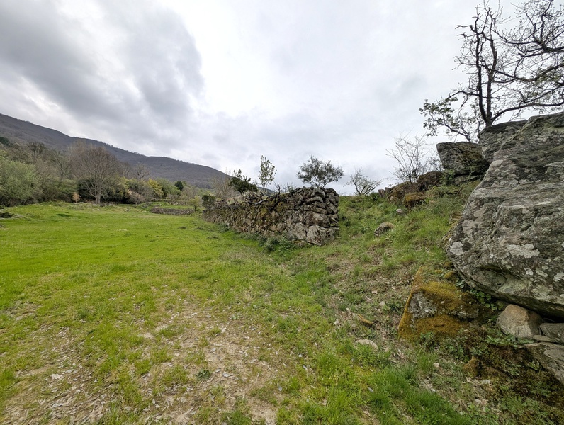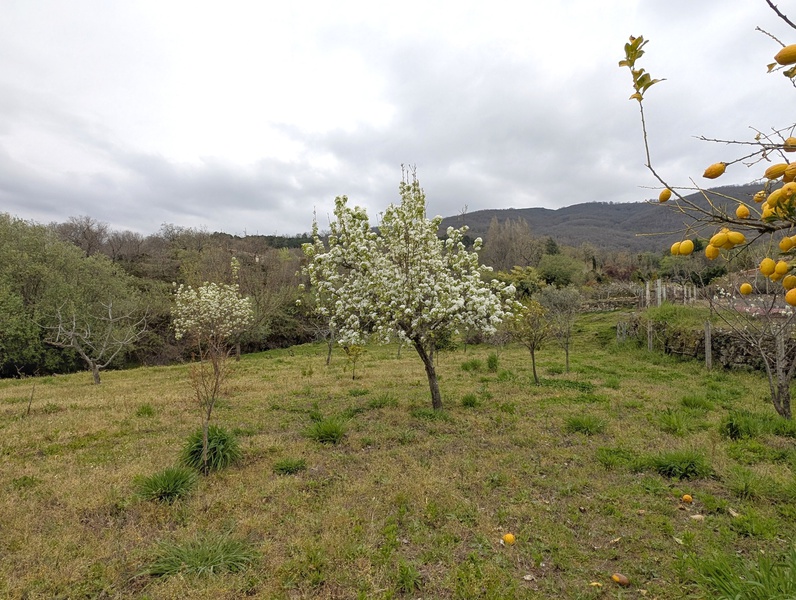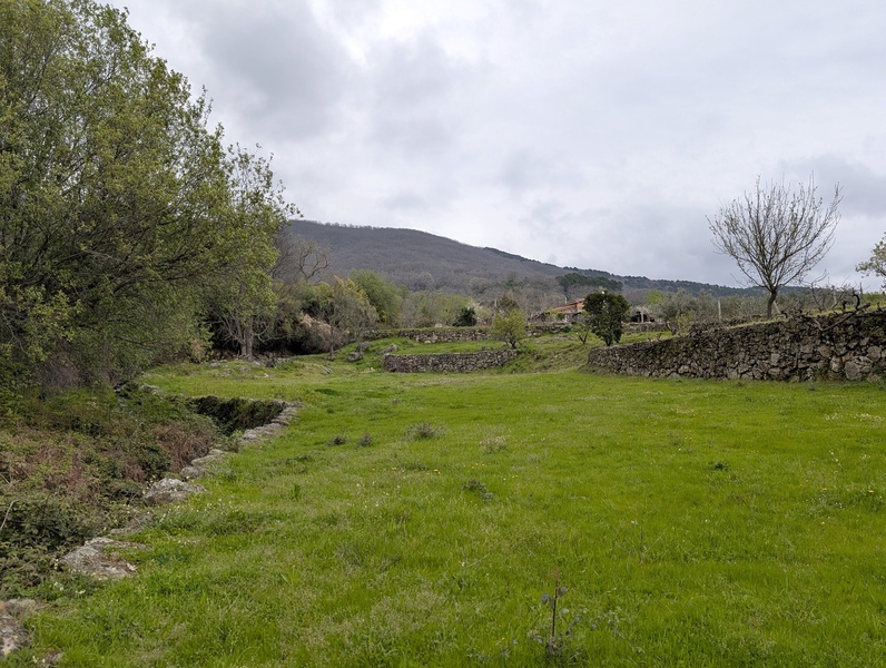 Descripción: Preciosa finca rústica en media ladera con una superficie de 10.943 m2, situada en el paraje de “La Raya”, en la carretera de Chilla, a una distancia de 3 kms. del casco urbano de Candeleda. Pradera de regadío y varios frutales, limoneros, naranjos, perales y viña, y una zona de robles.